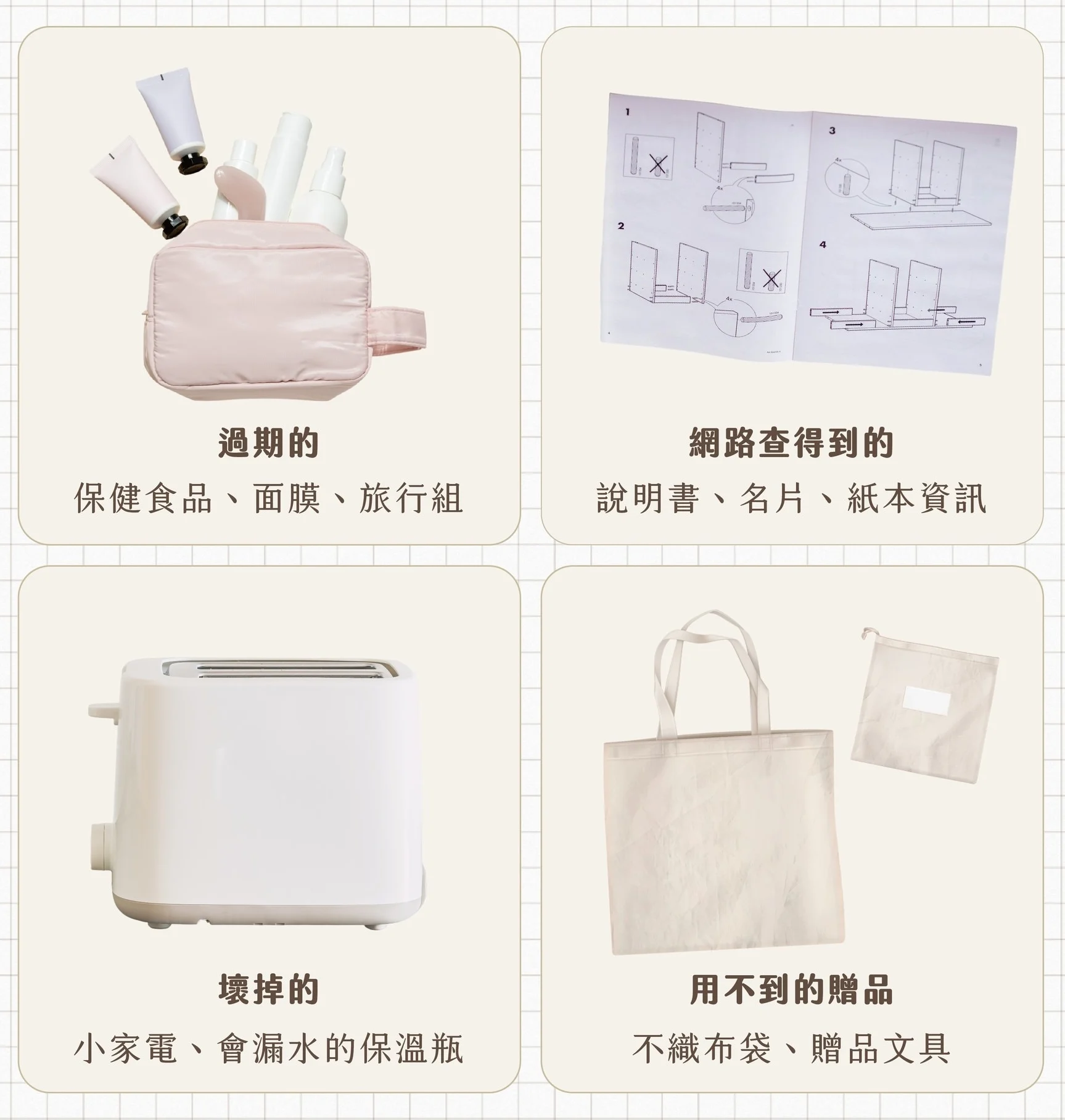 這類物品不一定馬上丟棄,但很適合在整理時重新檢視數量與使用狀態,避免無形中的累積。